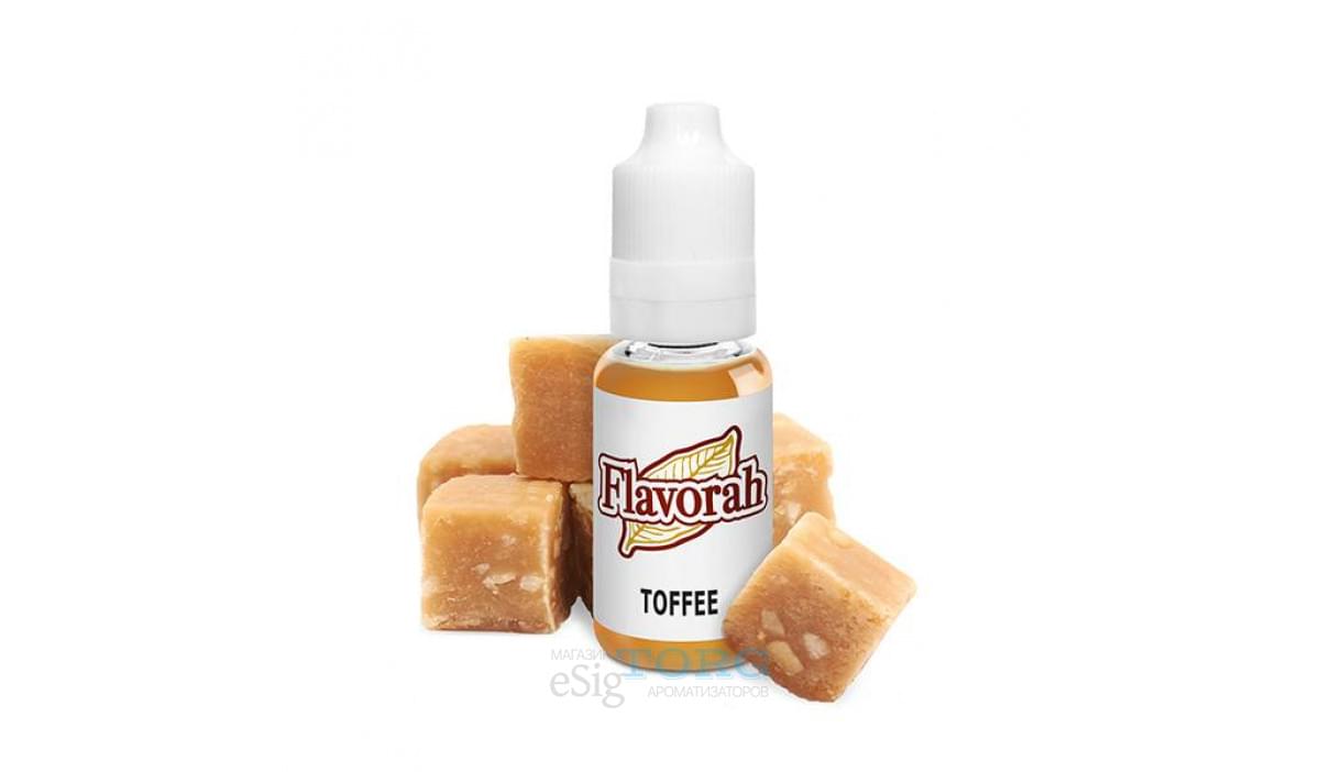 Toffee Flavorah — вкус ириски с нотами карамели. В послевкусии проявляется жареный сахар с приятным дымком. Перед замешиванием Toffee FLV встряхните бутылочку — возможно образование осадка. Придерживайтесь следующих рекомендованных концентраций: 2% (соло-замесы) и от 0,1 до 1,5% (миксы).